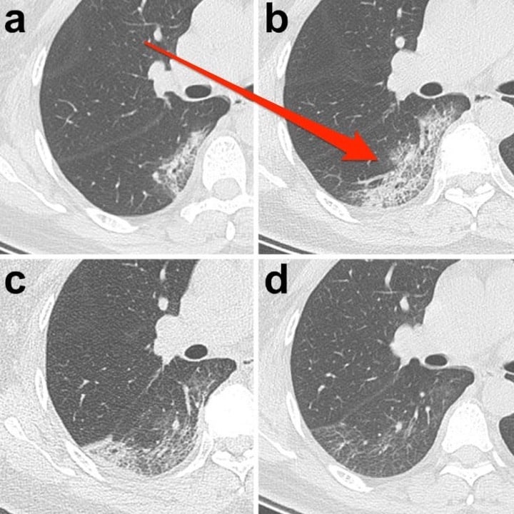 محققان بیمارستان Zhongnan دانشگاه ووهان اسکن بیماران را تجزیه و تحلیل کردند. اکثر آنها مردان مسنی بودند که مشکلات زمینه ای داشتند. تصاویر بالا سی تی اسکن ریه کرونایی یک بیمار ۵۲ ساله است.اولین گروه اسکنها (گروه A) در ۷ ژانویه، پنج روز پس از شروع علائم در بیمار، انجام شد. «کدورت شیشه مات» در پایین هر دو ریه قابل مشاهده است.این مرد از ۷ تا ۱۲ ژانویه تحت درمان قرار گرفت. پس از آن، به نظر میرسید وضعیت او بهتر شده است. سری دوم اسکنها (گروه B)، که در ۲۱ ژانویه انجام شد، نشان می دهد که بسیاری از لکه های سفید کوچک یا ناپدید شده اند.وضعیت بسیاری از بیماران ویروس کرونا به سرعت وخیم و «کدورت شیشه مات» آنها پس از چند روز بارزتر میشود.وضعیت بسیاری از بیماران ویروس کرونا به سرعت وخیم و «کدورت شیشه مات» آنها پس از چند روز بارزتر میشود.وضعیت بسیاری از بیماران ویروس کرونا به سرعت وخیم و «کدورت شیشه مات» آنها پس از چند روز بارزتر میشود.